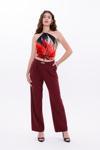 - Boru paça detayı modern ve şık bir siluet çizerken, pileli yapısıyla zarif bir dokunuş katmaktadır.