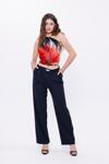 - Boru paça detayı modern ve şık bir siluet çizerken, pileli yapısıyla zarif bir dokunuş katmaktadır.