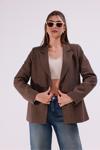 Lela Leopar Desenli Regular Fit Kemer Detaylı Peluş Dokulu Blazer Bayan Ceket 6839614 KAHVE - Image 1