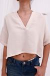 3964 Hafif Dökümlü Saten Gömlek - Krem - Image 1