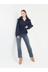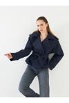 Lela Pamuklu Oversize Kruvaze Yaka Düğmeli Kuşaklı Bayan Trençkot 6830094 LACİVERT - Image 1