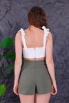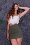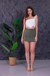 La Pante Normal Bel Arkası Şort Görünümlü Yeşil Mini Şortlu Etek