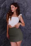 Normal Bel Arkası Şort Görünümlü Yeşil Mini Şortlu Etek