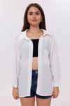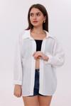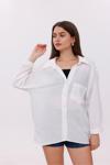 Önden Cepli Düşük Omuz Beyaz Gömlek