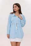 La Pante Önden Cepli Düşük Omuz Mavi Gömlek