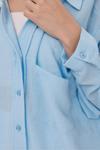 La Pante Önden Cepli Düşük Omuz Mavi Gömlek