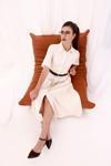 - Kemer aksesuarı belinizi vurgulayarak feminen bir siluet oluşturur.