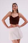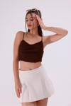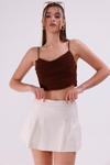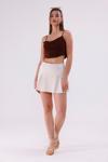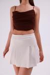 - Zarif tasarımıyla dikkat çeken önden pileli şort etek, hem gündüz hem de gece kullanımına uygunluk sunar.