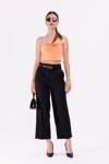 - Uzun boyu ile bacakları olduğundan daha uzun gösterirken, bol paça detayı hareket özgürlüğü tanır.