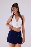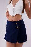 Önü Düğme Detaylı Lacivert Şort Etek