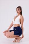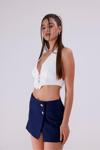 La Pante Önü Düğme Detaylı Lacivert Şort Etek
