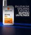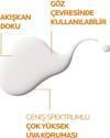 Ultra uzun UVA ışınlarına karşı en etkili güneş filtresi, renksiz, hafif ve akışkan doku SPF 50+ göz çevresinde kullanılabilir .
