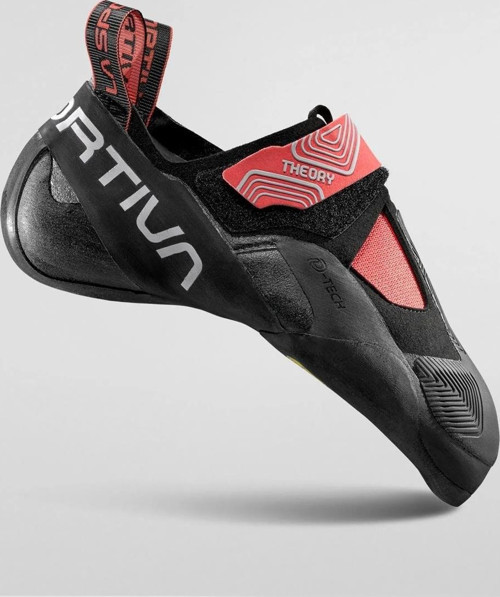 Theory, modern yapay tırmanış duvarlarında kullanılan yeni nesil büyük hacimli tutamaklara uyum sağlayacak şekilde tasarlanmış bir iç mekân performans ayakkabısıdır. Aşırı hassasiyet ve yüksek dinamizm kombinasyonu sayesinde tutamak üzerinde olağanüstü yayılma, tutunma ve tepki kabiliyeti sunar, bu da onu salon tırmanışı için son derece uygun hâle getirir. Model, La Sportiva Ar-Ge ekibinin gorillerin kavrama gücü ve kedigillerin parmak ucu hassasiyetinden yola çıkarak gerçekleştirdiği biyomekanik araştırmalarla şekillenmiş olup; günümüz tırmanış salonlarında görülen büyük hacimler ve dinamik hamlelerin evrimsel analizine dayanır. Amaç, her tutamakta maksimum güç aktarımı ve çevikliği korurken üst düzey duyarlılık sağlamaktır.