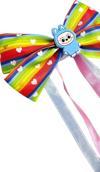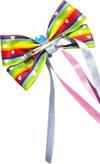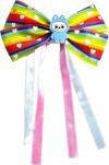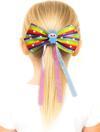 Minik prensesler için tasarlanmış bu renkli fiyonk saç tokası, canlı gökkuşağı renkleri ve üzerindeki beyaz kalp desenleri ile enerjik ve neşeli bir görünüm sunar.