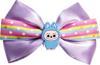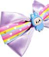 Parlak lila saten kurdele üzerine, pembe zeminli kalp desenli renkli şerit ile süslenmiş, ortasında mavi tavşan kostümlü sevimli karakter figürü yer alıyor.
