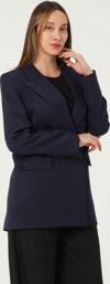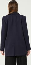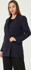 Bolivente Lacivert Astarlı Kruvaze Kapama Dokuma Oversize Blazer Ceket