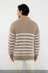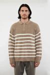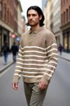 Ersefa Lacivert Çizgili Erkek Oversize Polo Yaka Triko Kazak Kalın Yapılı Standart Kol Kış Şıklığı Akrilik
