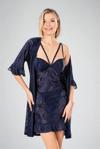 ? Lacivert Dantel İşlemeli 2’li Sabahlık Takımı ?