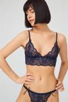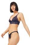 Lacivert Dantelli Transparan Balensiz Kadın Sütyen Takımı