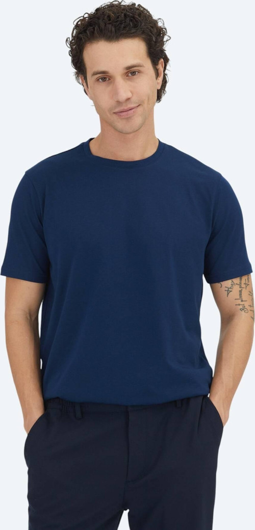 Lacivert Düz Bisiklet Yaka %100 Pamuk T-Shirt