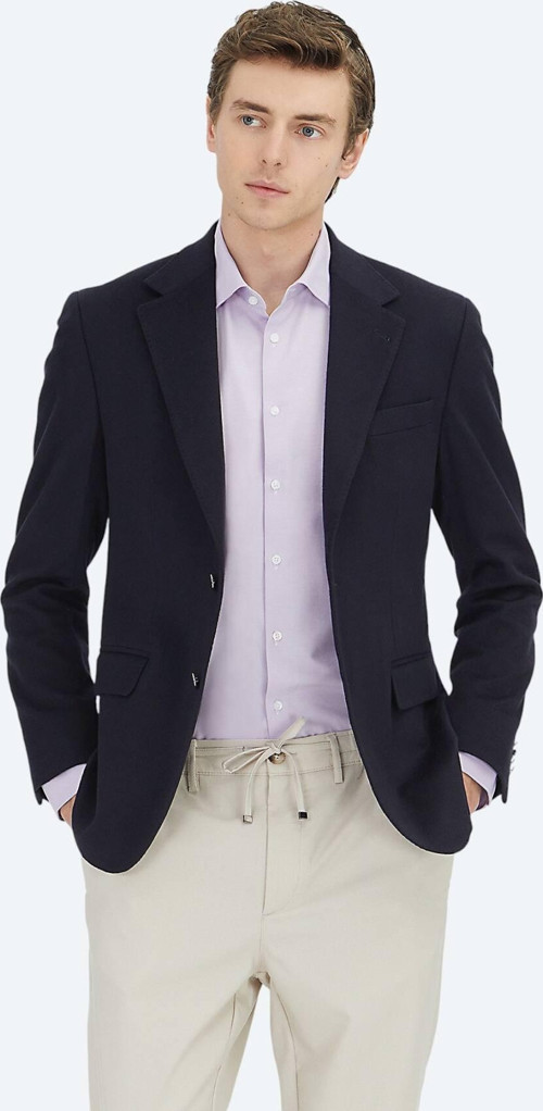 Kip Lacivert Düz Modern Fit Yün Karışımlı Ceket
