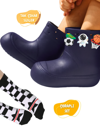 Rengarenk çıkarılabilir süslerle tasarlanmış yağmur botları, yanında eğlenceli desenli çorap seti ile geliyor!