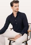 Etikmen Lacivert Hakim Yaka Keten Üç Düğmeli Erkek Gömlek