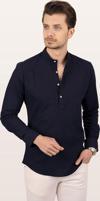 Lacivert Hakim Yaka Keten Üç Düğmeli Erkek Gömlek