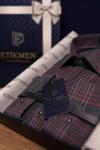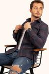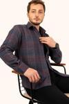 Etikmen Lacivert Kırmızı Çizgili Slimfit Oduncu Erkek Gömlek
