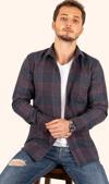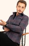 Lacivert Kırmızı Çizgili Slimfit Oduncu Erkek Gömlek