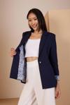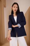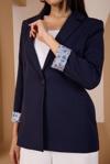 Lacivert Kruvaze Yaka Kolu Katlama Detaylı Regular Vatkalı Blazer Ceket