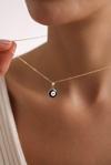 14 Ayar Altın Lacivert &Mavi Mineli Çift Taraflı Nazar Boncuğu Kolye Ağırlık: 2,47 gram Ürün kolye ucu genişliği 9,30 mm Yükseklik: 9,30 mm Belirtilen ağırlıkta (+/-) 0.10 gram sapma görülebilmektedir.; Altın ayarı: 14 ayar altın (585k) Üzerinde altın damga ve patenti bulunmaktadır.; Ürün orijinal sertifikası ve faturasıyla birlikte kendi özel kutusunda gönderilecektir.;