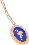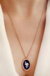 Lacivert mineli 925 ayar gümüş rose pelikan oval plaka kolye