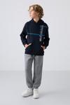 Tommy Life Lacivert Pamuklu Kalın İçi Tüylü Yumuşak Dokulu Standart Fit Baskılı Erkek Çocuk Sweatshirt - 11239