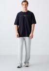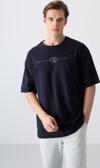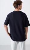 Lacivert Pamuklu Kalın Yumuşak Dokulu Oversize Fit Baskılı Erkek T-Shirt - 88323