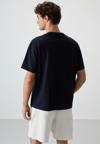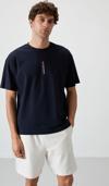 Air Jones Lacivert Pamuklu Kalın Yüzeyi Dokulu Oversize Fit Baskılı Erkek T-Shirt - 88368