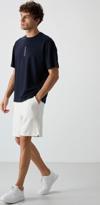 Lacivert Pamuklu Kalın Yüzeyi Dokulu Oversize Fit  Baskılı Erkek T-Shirt - 88368