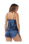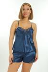 Lacivert Saten Babydoll Şortlu Takım - 259