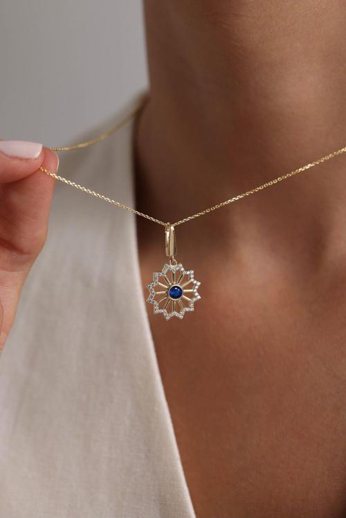 14 Ayar Altın Lacivert Taşlı Stary Charm Kolye Ucu