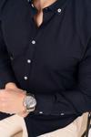 Koyu Mavi Slim Fit Dar Kalıp Klasik Yaka Düz Uzun Kollu Cepsiz Pamuklu Gömlek - Image 1