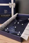 Etikmen Beyaz Armür & Lacivert Çizgi Desen Hediye Kutulu Gömlek Kravat Seti