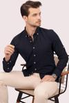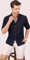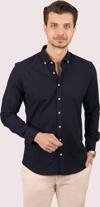 Etikmen Lacivert Yaka Düğmeli Keten Slimfit Erkek Gömlek