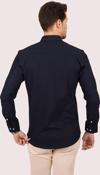 Lacivert Yaka Düğmeli Keten Slimfit Erkek Gömlek