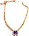Lacivert Zirkon Taşlı 925ayar Gümüş Rose Dorika Kolye