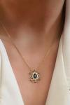 Lacivert zirkon taşlı gümüş üzerine altın kaplama kolye