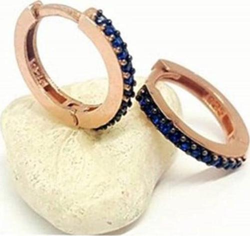 gümüş üzerine rose altın kaplama lacivert zirkon taşlı gümüş halka küpe