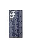 Galaxy S24 Ultra Kılıf Lisanslı Magsafe Özellikli Pu Deri Görünüm Monogram Desenli Lacivert