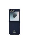 Lacoste Galaxy Z Flip 6 Kılıf Lisanslı Pu Pike Desenli İkonik Timsah Dokuma Logo Lacivert