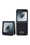 Lacoste Galaxy Z Flip 6 Uyumlu Kılıf Lacoste Lisanslı Pu Pike Desenli Yüzey İkonik Timsah Dokuma Logo Siyah
