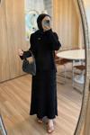 Rahat kesimli üst ve akıcı etek gün boyu konfor sağlar; lastikli bel pratik bir oturuş ve esneklik kazandırır.